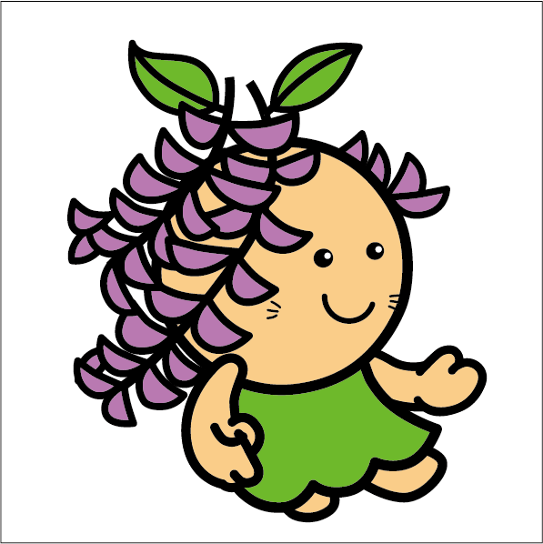 昭和53年4月に誕生した藤岡町(現在の豊田市藤岡地区)では、町制施行当時、町の花や、木などが制定され「ふじ」が公式の花とされました。これは、町名にあわせて、地区内の随所に野生の「ふじ」の花が見受けられたことが由来と考えられます。以来、藤岡を代表する花として、御作町の「ふじの回廊」をはじめ、地区内の小学校、こども園、公園などには「ふじ棚」が作られ、町民に憩いをもたらす場所となっています。平成2年に藤岡町商工会(現在の藤岡商工会)では、地域の特産品づくりと名所、旧跡の掘り起こしが行われました。それとともに、藤岡をあらわすキャラクターマークの制作も行いました。そうした中、生まれてきたのが「藤っ子ふうちゃん」(以下「ふじっこふうちゃん」または「ふうちゃん」)です。藤岡町時代から、藤岡地区の宣伝大使として幅広く活動をしています。